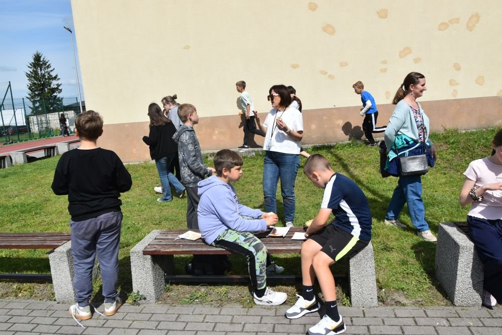 Sala gimnastyczna i boisko szkolne zamieniły się w prawdziwą krainę zabawy i radości! Największe emocje wzbudziły jednak dmuchane zjeżdżalnie i zamki, które pojawiły się na szkolnym placu. Dzieci z ogromnym entuzjazmem skakały, śmiały się i korzystały z każdej chwili tej wyjątkowej zabawy.
